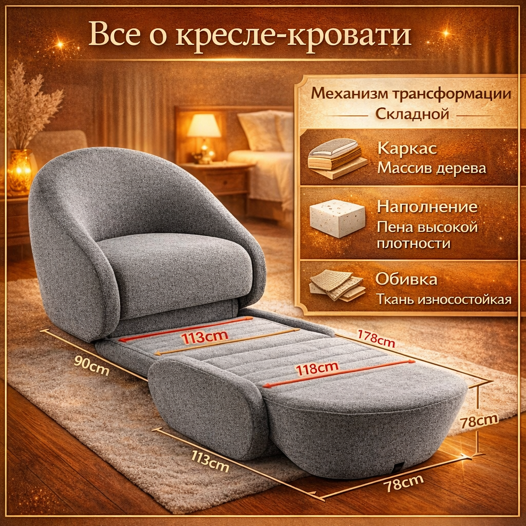 | Формат: | Кресло + спальное место (2-в-1) |