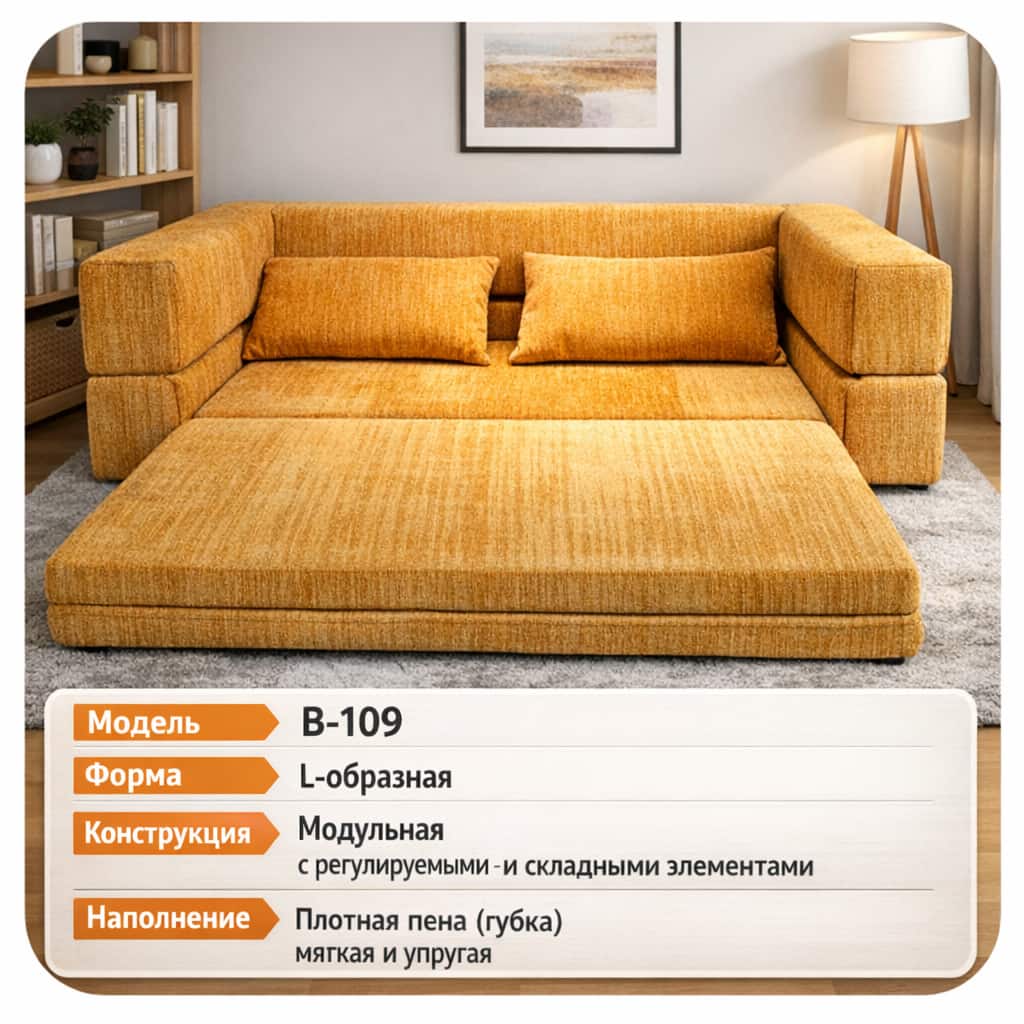 Модульная система позволяет адаптировать конфигурацию под размеры помещения, а регулируемые и складные элементы повышают практичность дивана. Наполнение из плотной пены обеспечивает мягкую, но упругую посадку, сохраняя форму даже при длительной эксплуатации.